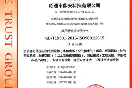 2003年11月10日,昭通市鼎安科技有限公司成立,初始主要從事第三方安全工程技術(shù)服務(wù),經(jīng)多年運營,發(fā)展為多專業(yè)綜合科技平臺,為社會提供多種專業(yè)技術(shù)服務(wù)工作。 現(xiàn)公司注冊資金為1200萬元,公司法定代表人:毛衛(wèi)旭。公司主要業(yè)務(wù):安全評價、安全標準化評審、安全工程技術(shù)服務(wù);環(huán)境監(jiān)測、職業(yè)衛(wèi)生檢測、檢驗;法律訴訟及非訴訟服務(wù);司法鑒定、固定資產(chǎn)投資項目節(jié)能服務(wù);工程咨詢;工程測量測繪;安全教育培訓等。是安全生產(chǎn)服務(wù)、安全教育培訓機構(gòu),也是環(huán)境監(jiān)測和職業(yè)衛(wèi)生服務(wù)機構(gòu),同時也是綜合的檢測檢驗、綜合科技平臺服務(wù)機構(gòu)。多年來為公、檢、法、司、軍、警、海關(guān)、仲裁、安監(jiān)、工礦商貿(mào)企業(yè)、社會團體及個人提供多專業(yè)技術(shù)服務(wù)。